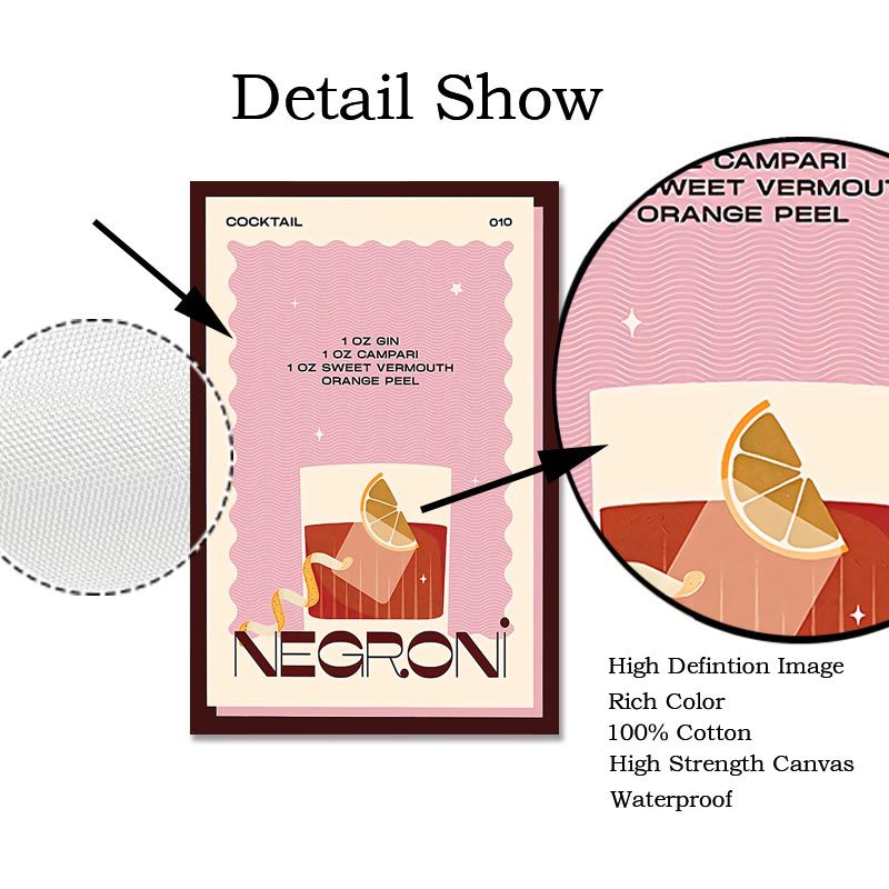 enhance your space with our Cocktail Mojito Old-Fashioned Bar Wall Art Canvas. This canvas painting features a vivid and charming scene of a mojito cocktail bar with an old-fashioned style, bringing a touch of nostalgia and elegance to any room. Crafted on high-quality canvas, it showcases rich colors and fine details, ensuring a visually stunning effect. Whether you hang it in your living room, bar, or entertainment area, it will surely become a focal point, attracting guests' attention and sparking conversations. It's not just a painting but also a great decoration piece that adds a unique atmosphere to your home.